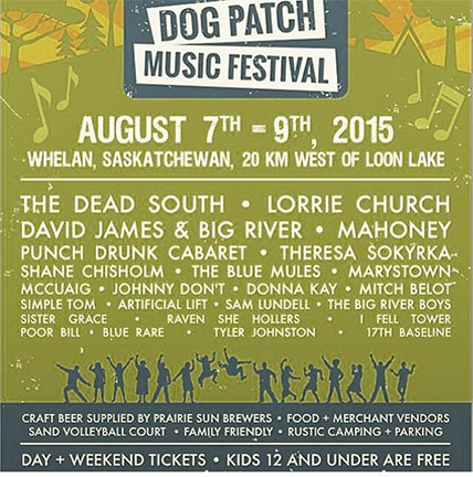 For those of you who don’t know, the Festival is in Whelan Saskatchewan, approximately 20 km west of Loon Lake at the end of the Fowler Lake/Murphy Lake road. There will be a map soon. Hope to see you all there!!! So leave your worries behind for a weekend of fun, music and an opportunity to reconnect with old friends and make new ones at the same time. Enjoy a true celebration of life!!!! So come out to the DOG PATCH Music Festival and howl at the moon!!!